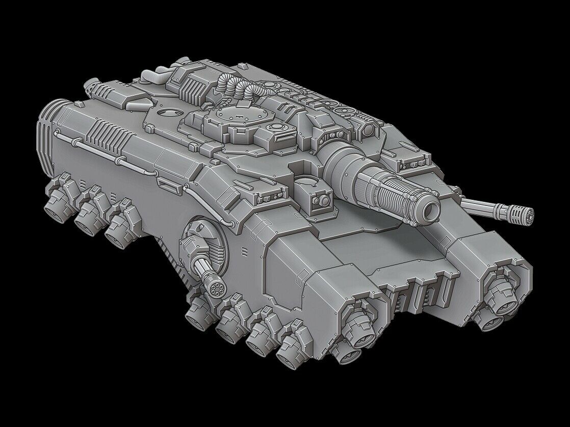 High quality resin 3d print, Comes with 3 options for Main Cannon (long barrel, short barrel as pictured, and triple barrel anti air gun) and 4 options for sponson weapons (automatic cannon, Heat Cannon, Rotor Cannon, Heavy Flamer)